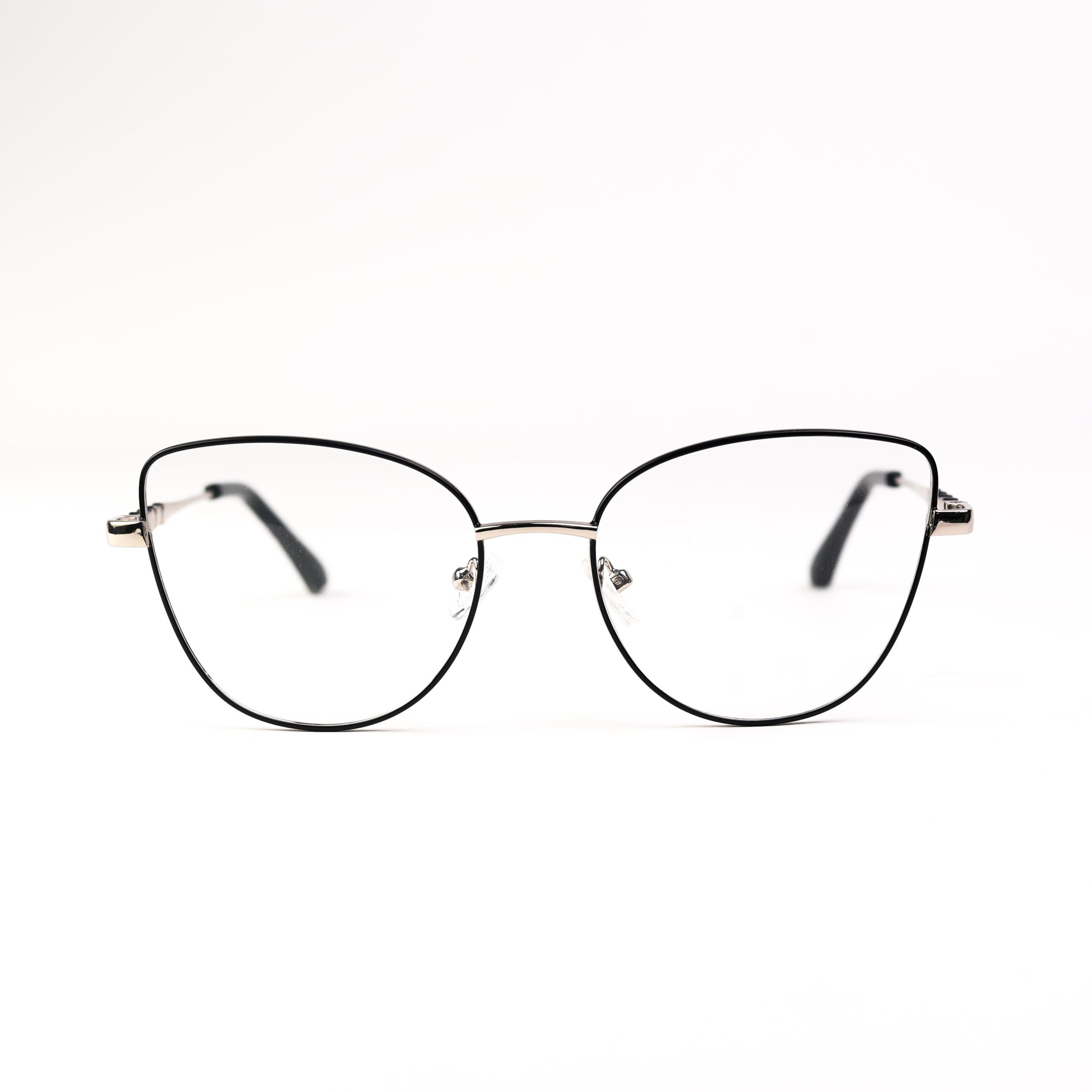 Lunettes de vue pour femmes en métal argenté et noir. Convient à tous types de corrections.