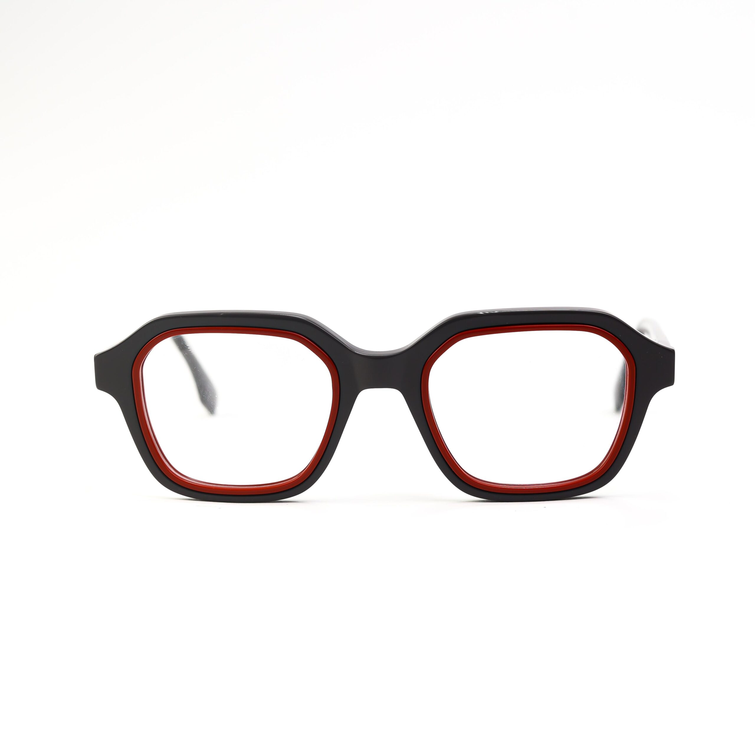 Lunettes de vue pour hommes. Monture de forme réctangulaire en acétate épais avec face bicolore. Une vraie déclaration de style pour un caractère assumé.