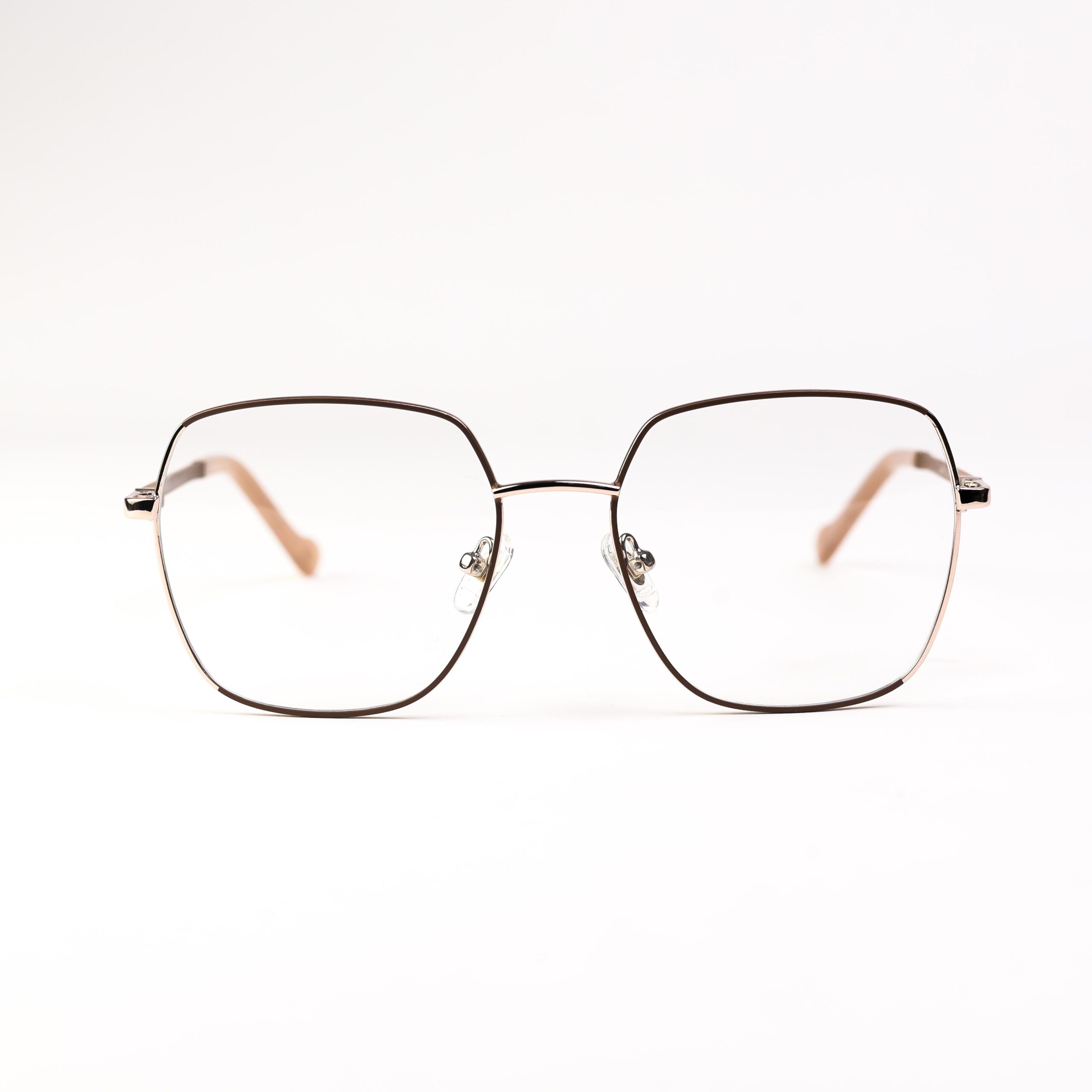 Lunettes de vue pour femmes. Monture en métal doré marron de forme carrée oversized.