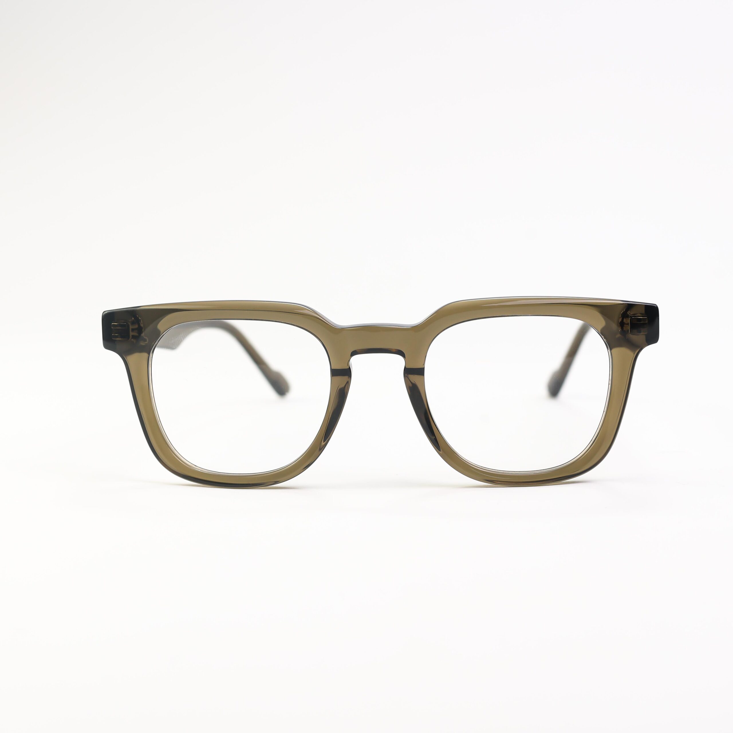 Lunettes de vue pour femmes. Avec son design carré oversized et ses branches épaisses enchassées d’une pierre de cristal jaune, cette monture en acétate de couleur vert transparent est une véritable pièce de caractère. Elle combine modernité et allure contemporaine, parfaite pour ceux qui aiment affirmer leur style avec assurance.