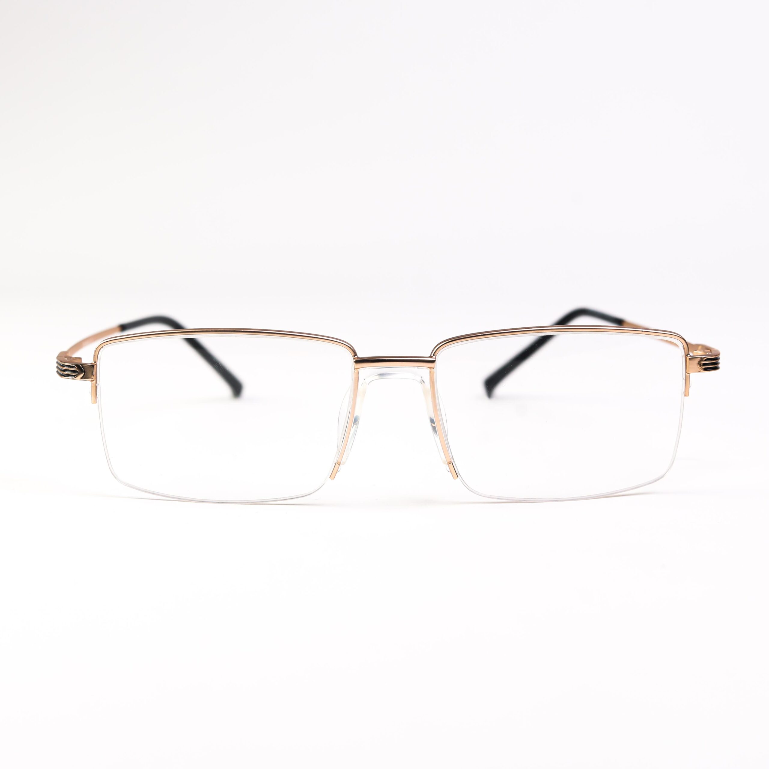 Lunettes de vue en métal doré mat. Montage nylor et plaquettes nez-selles.