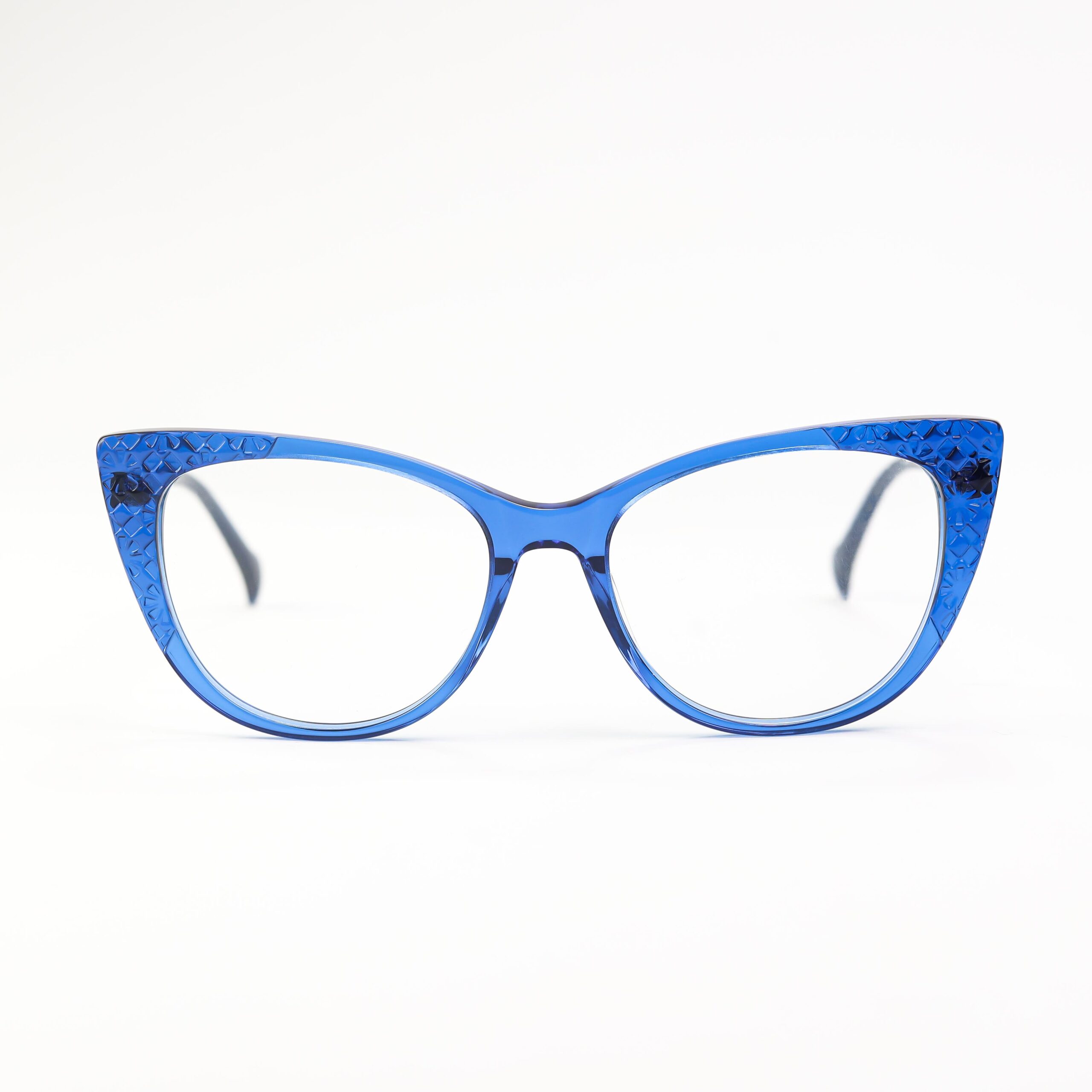 Lunettes de vue pour femmes. Avec son allure papillonnante, cette monture est à la fois classique et sophistiquée. Lunettes fabriquées en acétate transparent. La forme est mise en valeur par de l’acétate en relief sur l’extrémité de la monture.