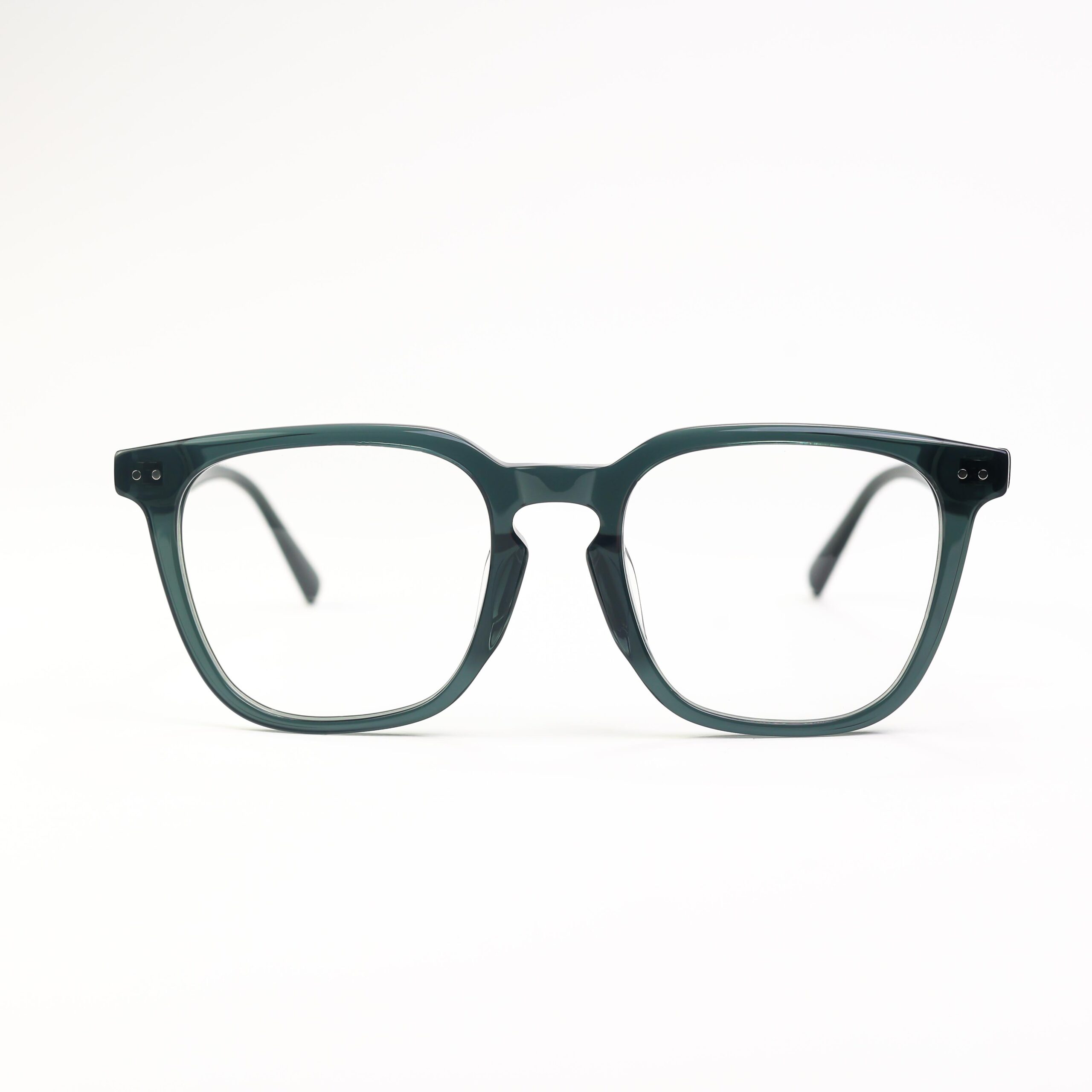 Lunettes de vue pour hommes. Monture réctangulaire en acétate transparent gris vert, alliant élégance et modernité. Sa forme rectangulaire structurée lui confère un style affirmé.