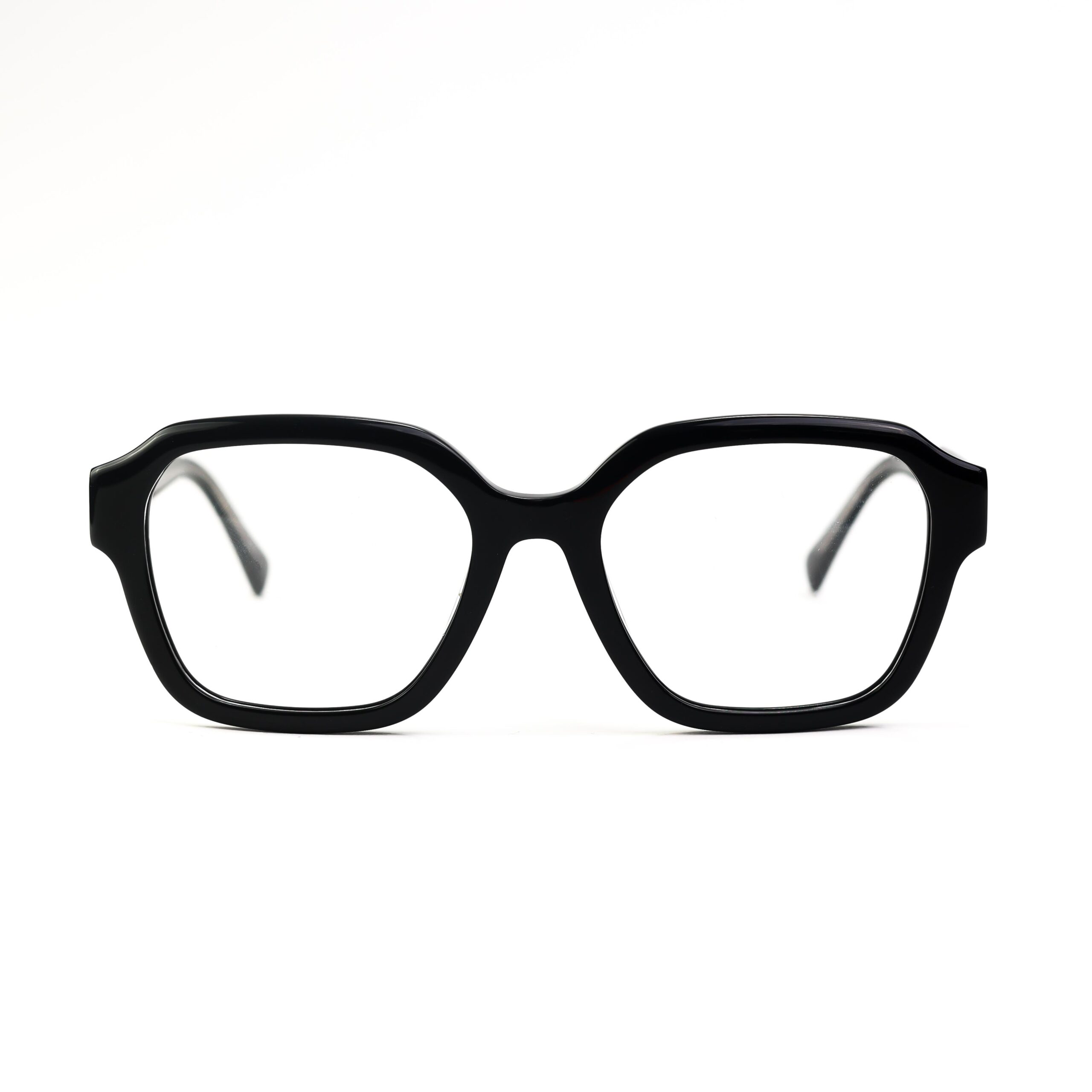 Lunettes de vue  en acétate noir épais, pour un look audacieux et un caractère bien affiché. Adaptée aux différentes corrections.