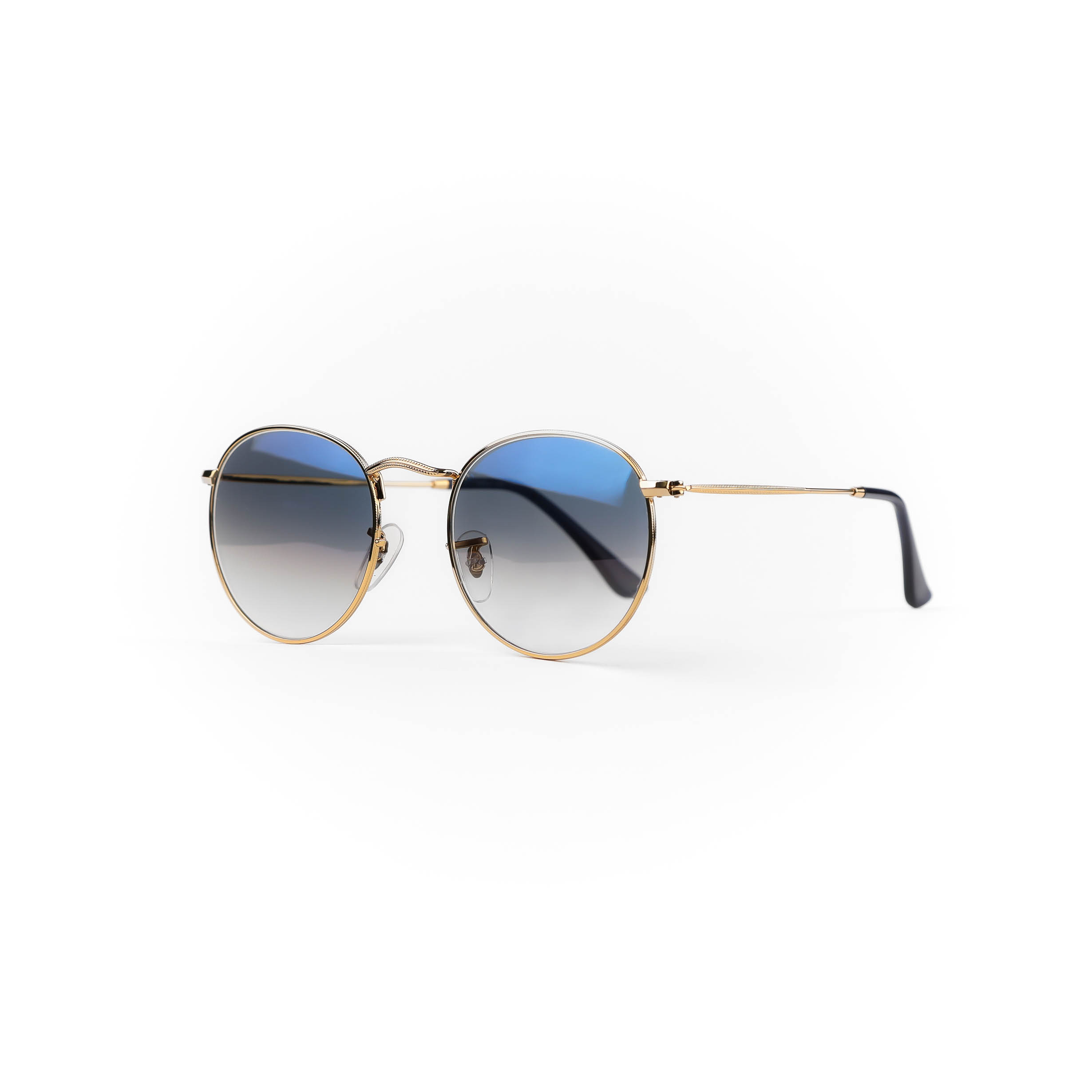 Lunettes de soleil rondes vintage – Monture dorée verres dégradés bleus