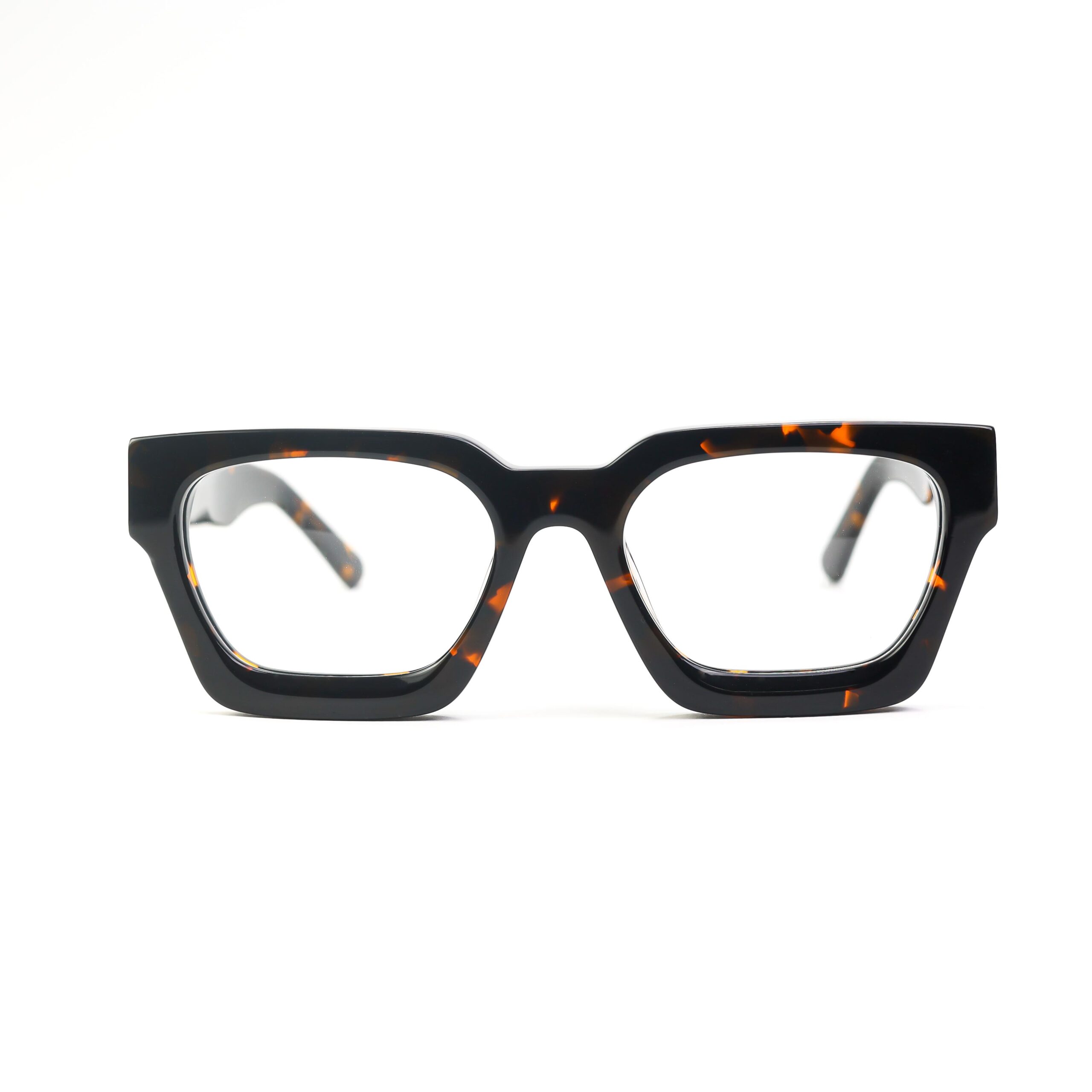 Lunettes de vue unisexe. Monture oversized en acétate épais, couleur écaille. Chic et tendance, elle est conçue pour des porteurs qui assument leur différence. Grace à la qualité de la matière, cette monture est légère malgré sa taille imposante.