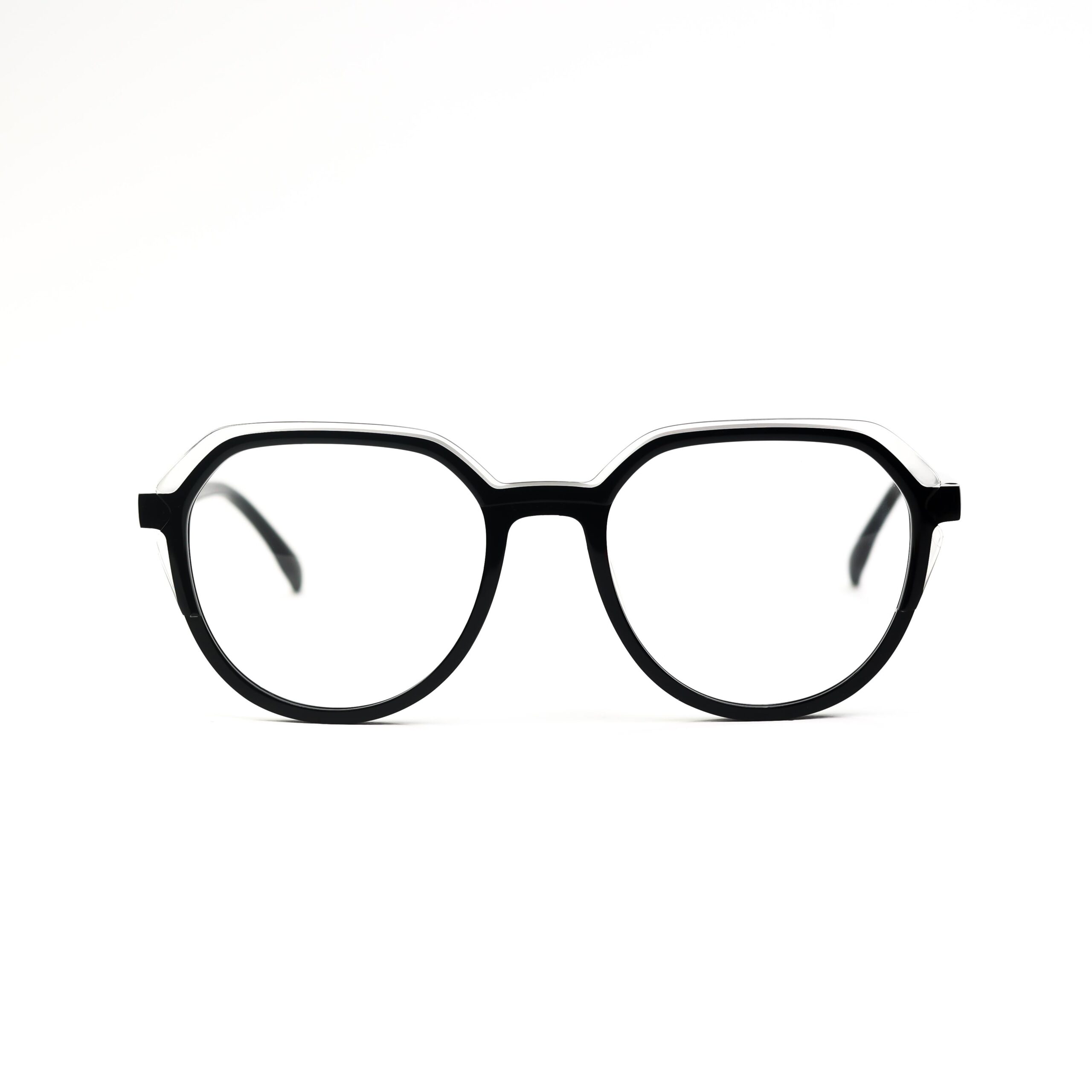 Lunettes de vue unisexe. Monture en acétate noir et transparent qui allie élégance classique et forme tendance. Pour un style sobre et raffiné.