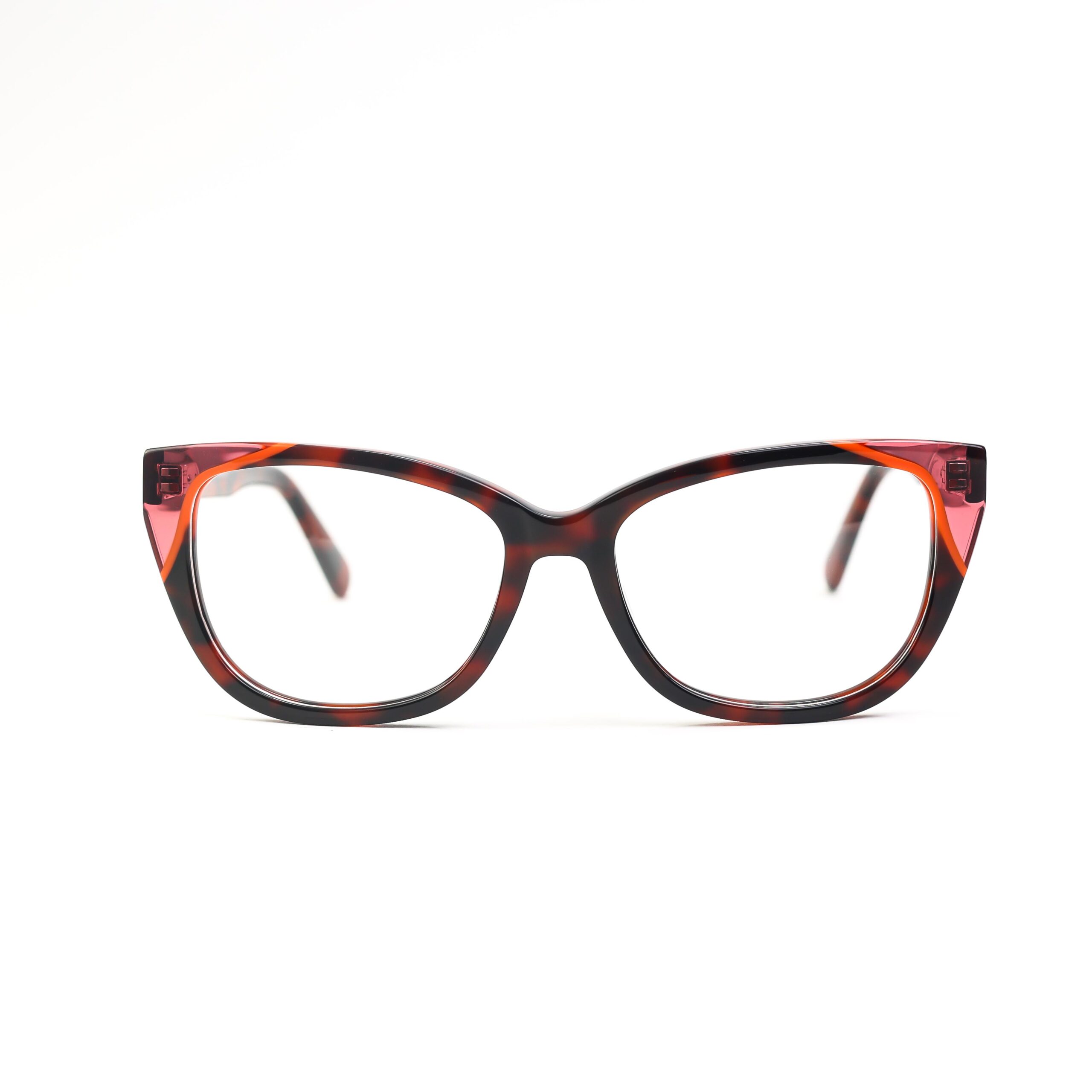 Lunettes de vue pour femmes. Monture papillonante en acétate laminé de couleur écaille avec des extrémités rose transparent. La combinaison réussie de couleurs ne manquera pas de séduire tous les regards.