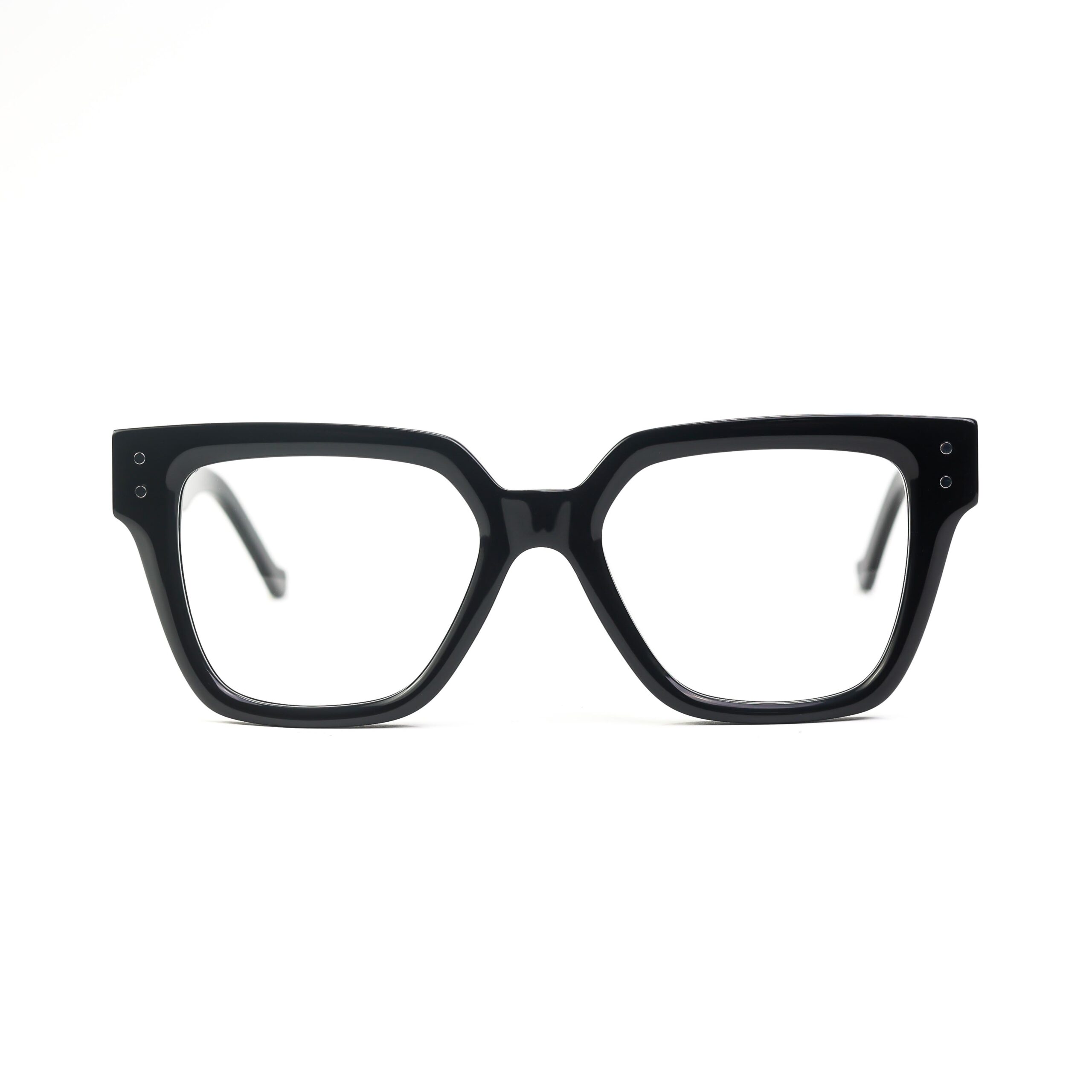 Lunettes de vue unisexe. Monture en acétate épais oversize, aux lignes pures pour un look audacieux et un caractère bien affiché.