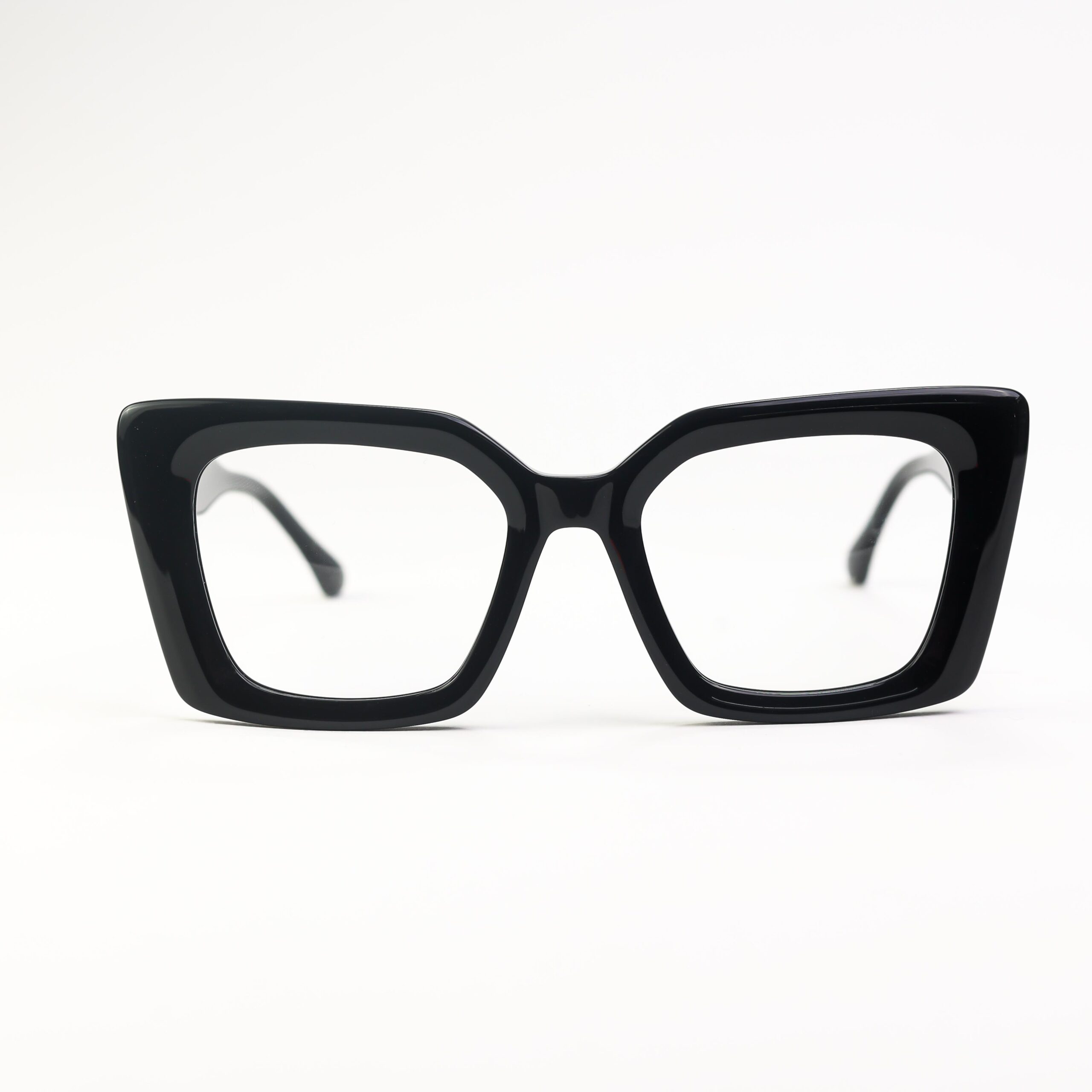 Lunettes de vue pour femmes. Monture carrée oversized en acétate épais noir, conçue pour les amateurs d’un look bien affirmé.