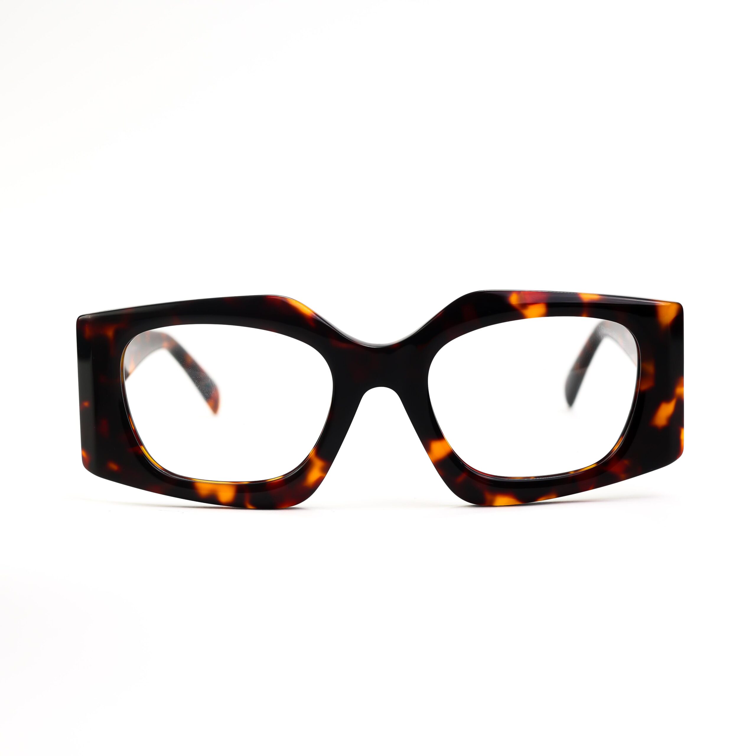 Lunettes de vue pour femmes. Monture réctangulaire en acétate épais, couleur écaille, pour un look audacieux et un caractère affiché.